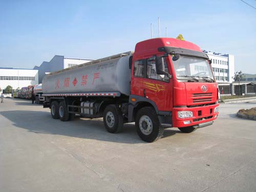 | 解放前四后八加油車罐體有效容積:25.5立方米.罐體外形尺寸(長×寬×高)(mm)9100×2400×1540。運輸介質:汽油,密度:700千克/立方米。隨底盤選裝平頂駕駛室。 |