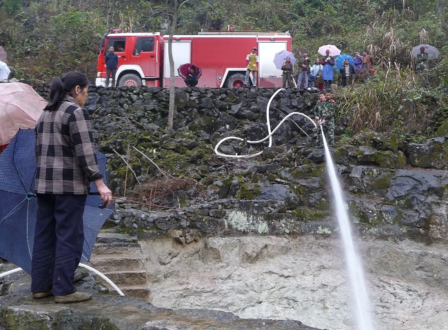 金城江區(qū)保平鄉(xiāng)元洞村號洞屯100多位村民長期依靠一個(gè)330立方米的集雨水柜蓄水供給。由于持續(xù)干旱,去年12月,該水柜集水已干枯見底,群眾飲水十分困難。保平鄉(xiāng)黨委、政府立即啟動(dòng)抗旱應(yīng)急預(yù)案,一方面組織群眾采取自救措施,一方面積極與消防部門聯(lián)系利用消防車送水救援。 近日,金城江消防大隊(duì)派出消防車,在山區(qū)道路上爬行2個(gè)多小時(shí)后,把8噸水注入水柜,解決了該屯群眾用水燃眉之急。 |